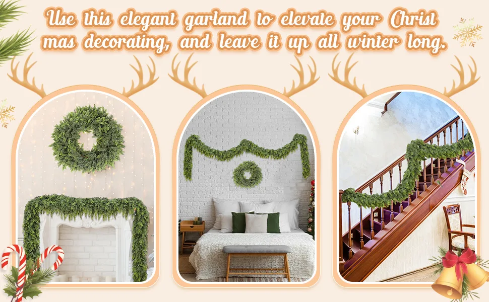Your garland may arrive slightly compacted for shipping. Simply gently pull apart the branches and fluff the greenery until it reaches your desired fullness. This takes just a few minutes and gives the garland a natural, lush appearance.