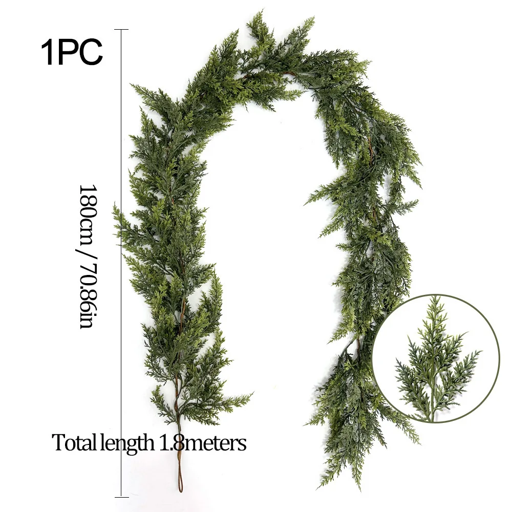 Our Cypress Garland is 9 feet (108 inches) long. This is perfect for decorating mantles, stair railings, entryways, door frames, or layering across a table centerpiece. Most customers find one garland is enough for a standard fireplace mantle or railing section.